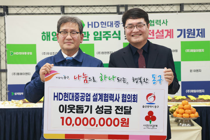 HD현대중공업 설계협력사 협의회는 25일 HD현대중공업 해양EPC관 로비에서 성금 1000만원을 동구에 기탁했다.