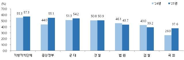 국가기관 신뢰도 1위는 지자체…검찰·법원은 신뢰도 급락