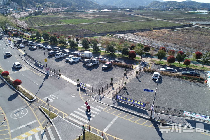 [하동=뉴시스] 차용현 기자 = 경남 하동군 읍내 도심지에 만남의 광장 임시주차장이 조성되면서 만성적인 주차난이 해소될 전망이다.